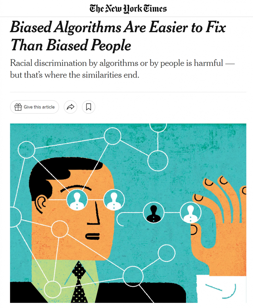 Nguyên văn tiêu đề này là Biased Algorithms Are Easier to Fix Than Biased People của tác giả Sendhil Mullainathan (Gs. trường Chicago), bài đăng trên NY Times năm 2019. Bài này mượn kết quả của một nghiên cứu 15 năm trước đó của nhóm tác giả Bertrand (2004) Are Emily and Greg More Employable than Lakisha and Jamal? A Field Experiment on Labor Market Discrimination.